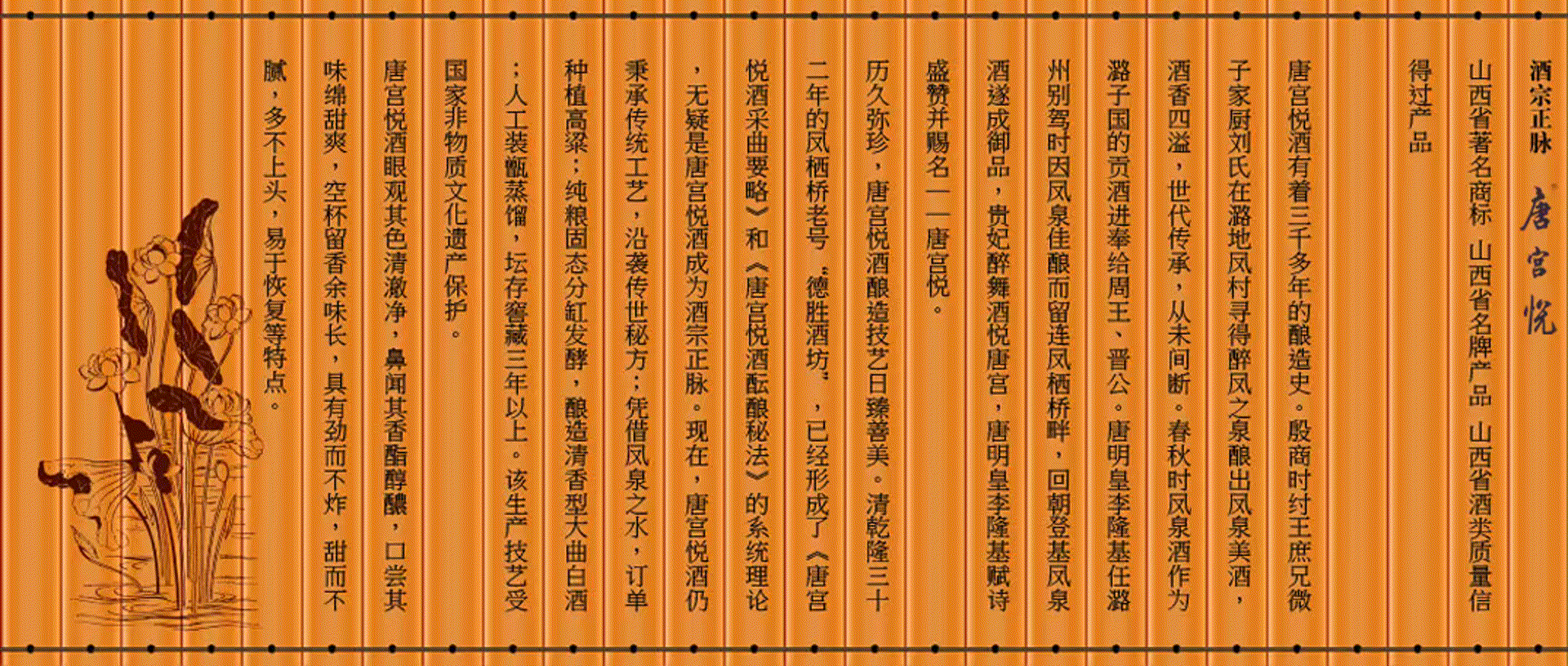 首    頁 企業(yè)簡介 唐宮悅簡介 企業(yè)榮譽 唐宮悅酒文化 品牌、產(chǎn)品 新聞動態(tài) 聯(lián)系我們